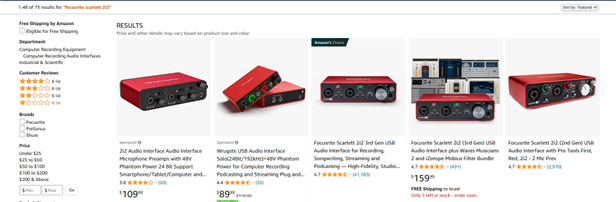 2. Make a query, as specific as possible, in the search bar. For example, I recently looked for a midi controller with a USB connection.